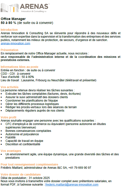 Cliquez sur l’image pour plus d’informations. Nous sommes à la recherche de talents. Postulez dès maintenant à info@arenas-innovation.com ! Délai de postulation : 31.10.2025